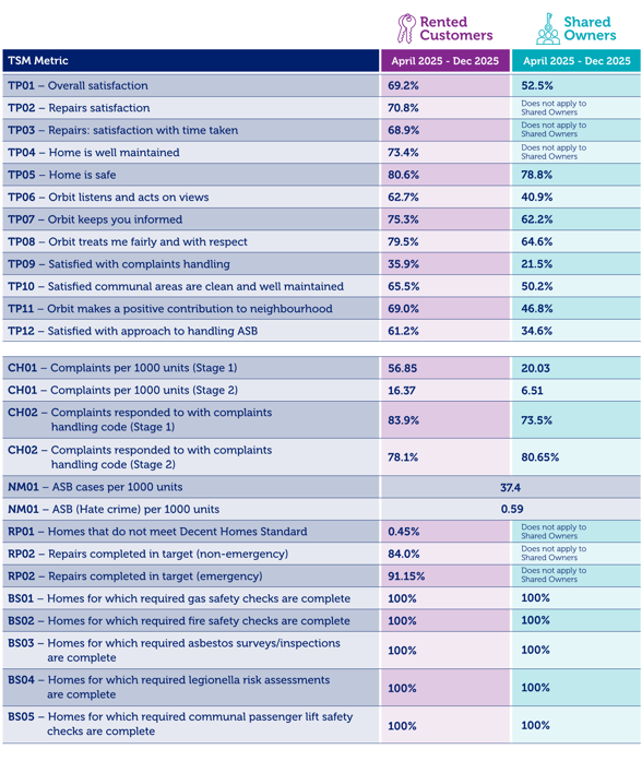 From April 2023, the Regulator of Social Housing introduced new performance measures for all housing associations called Tenant Satisfaction Measures (also known as ‘TSMs’). These measures help you to understand how well we’re doing when it comes to providing good quality homes and services.